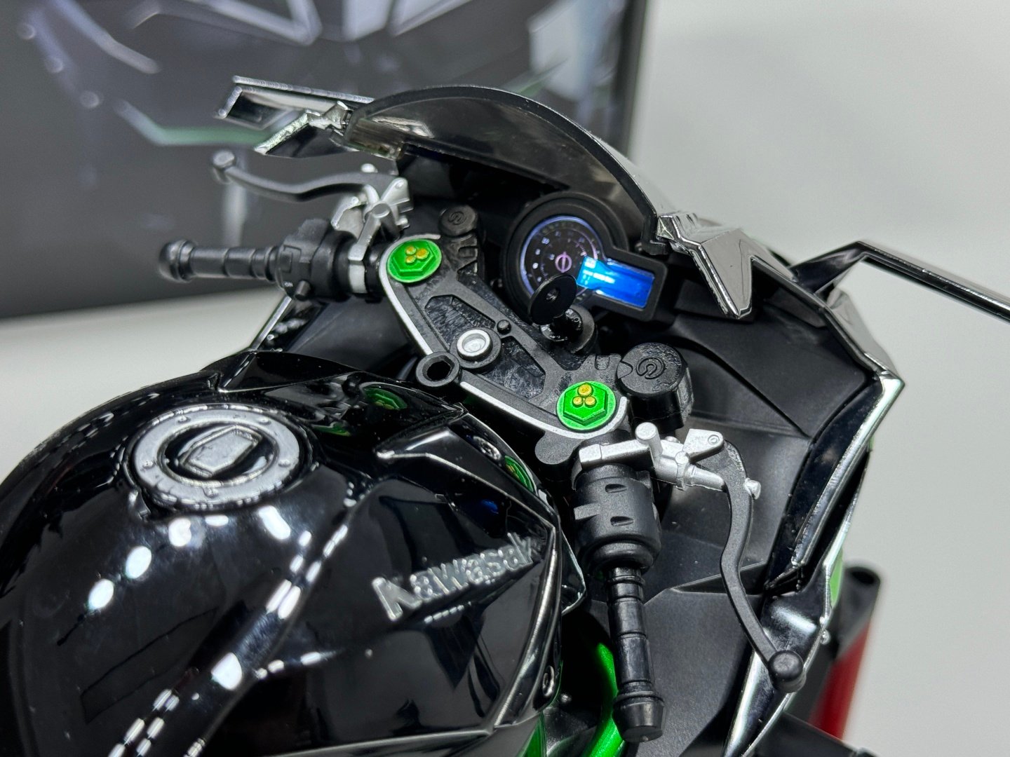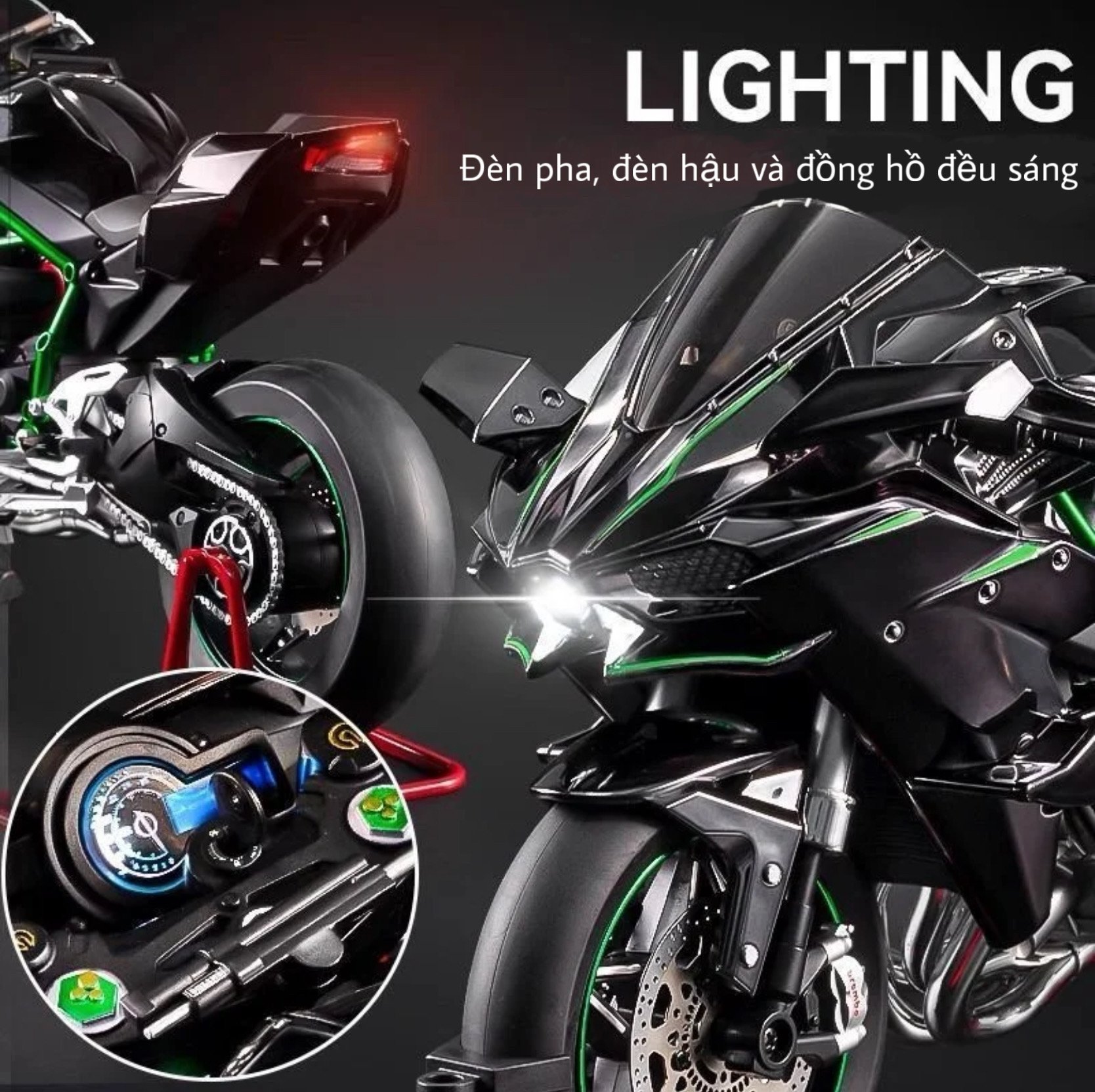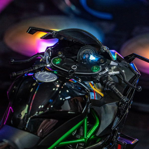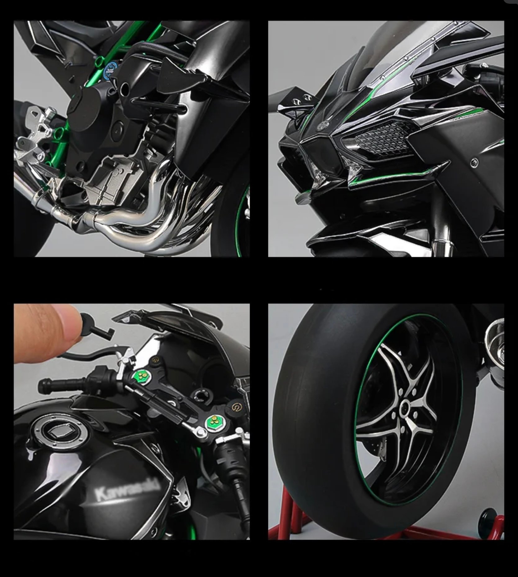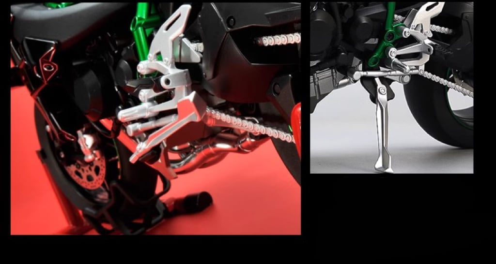 Kawasaki Ninja H2R 1:6 ไม่ใช่แค่โมเดลแบบคงที่ แต่ยังมาพร้อมฟีเจอร์ทันสมัยเพื่อประสบการณ์ไดนามิก โมเดลนี้ได้รับการออกแบบอย่างพิถีพิถันด้วยรายละเอียดที่คมชัดและสมจริง ซึ่งรวมถึง: